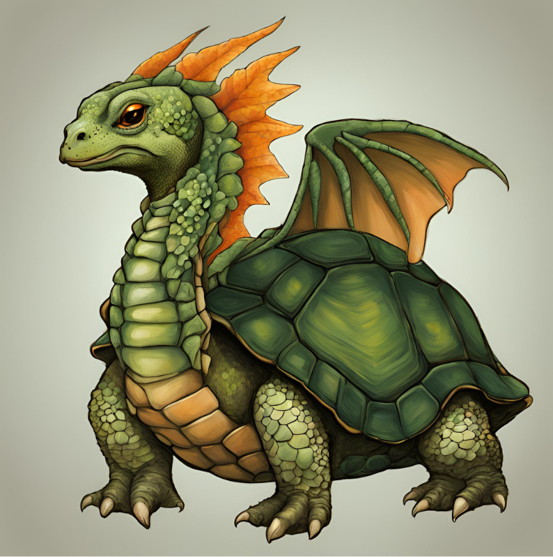 The Mireback is a hulking tortoise-dragon hybrid that prowls the swamps of the Isle of Macroura. With jagged orange spines along its back, a long tail, and small wings sticking out of its massive shell, the Mireback is as dangerous as it looks. It moves slowly, blending into the swampy terrain, but don’t be fooled—its powerful claws and crushing bite can take down anything that dares cross its path. Locals say the Mireback has a mean streak, often charging at anything that disturbs its swampy lair.